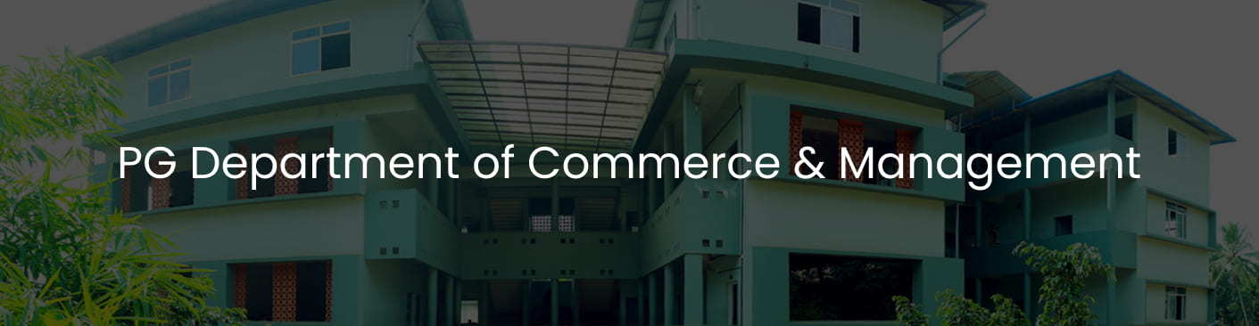 The PG Department of Commerce and Management has been providing quality education since the beginning of the college in 2011. Currently there are 13 teaching faculties and around 550 students in the department. The department offers one PG course (M.Com Finance) and three UG courses (B.Com Computer Application, B.Com Finance and BBA). The department follow the syllabus of University of Calicut through learner– centered teaching methods such as case studies, role plays, field visits and project works. Besides the regular program, the department offers value added and co - curricular programs. Remedial classes also being organized for the deserving students. With the help of the Commerce forum the department has achieved many laurels.